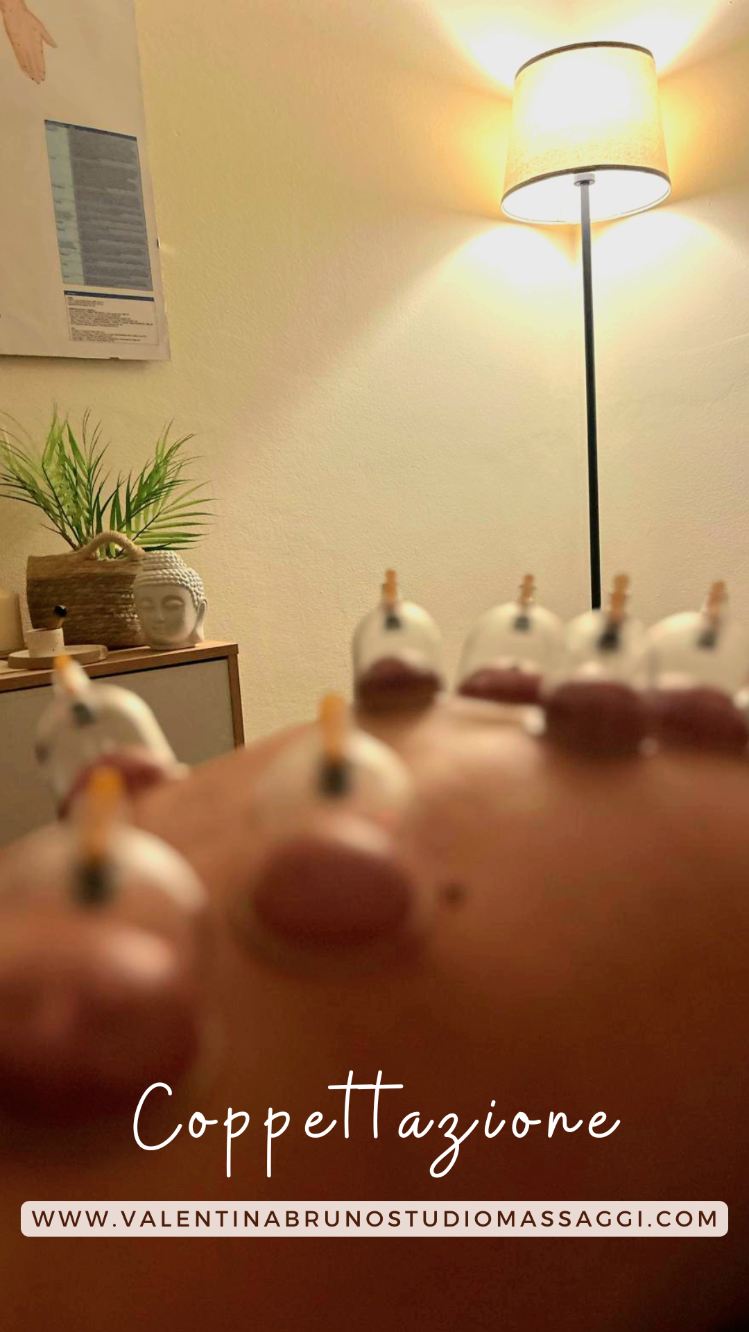 La cupping therapy (coppettazione, appunto) è un'antica pratica orientale che affonda le sue radici nella medicina tradizionale cinese. Molto apprezzata soprattutto dagli atleti e sportivi in quanto ha tra i benefici il miglioramento degli stati tensivi riflessi soprattutto su spalle e schiena anche grazie al miglioramento dell'ossigenazione dei tessuti tramite la stimolazione della microcircolazione sanguigna e linfatica.